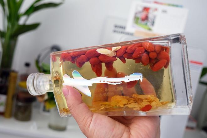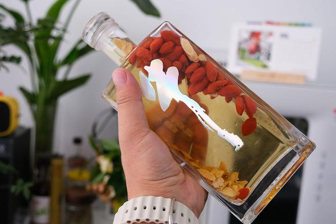 透明的瓶身还可以二次利用,加上瓶塞是密封不透气的设计,可以泡点养生酒,没事拿出来小酌一下,还是很惬意的。