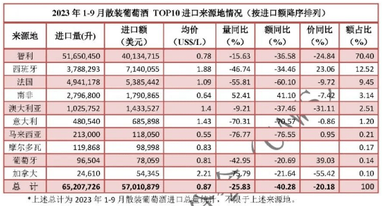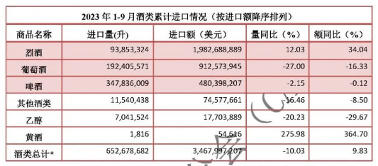 近日,中国食品土畜进出口商会酒类进出口商分会发布了2023年前三季度酒类进出口情况。