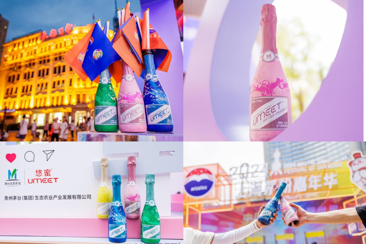 公开资料显示,茅台生态UMEET蓝莓气泡酒是中国高端女性酒单上的第一款品质愉悦酒,以6°酒精度精准切入当下正火的低度酒细分市场,主张“身心双悦,一口惊艳”,在口感、香气、色泽上都展现出独特魅力,不愧是茅台文化与品质的重要体现。瑰丽时尚的泼墨式瓶身设计以及砰砰的仪式感开瓶设计,使得这款酒很快就风靡时尚潮流人群。