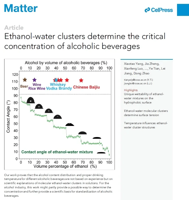 5月1日,中国科学院理化技术研究所江雷院士团队与五粮液技术团队合作,在Cell子刊材料学顶级期刊《Matter》上发表最新研究,该文是目前白酒相关领域影响因子最高的研究型论文。