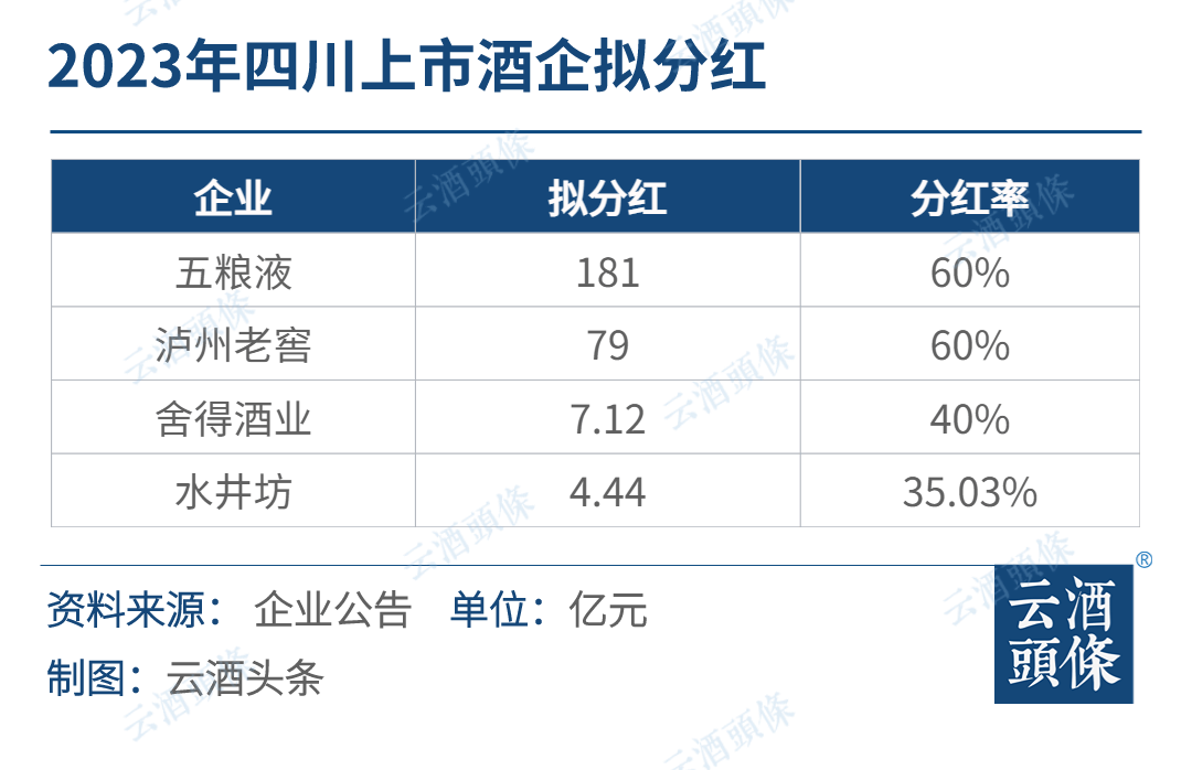 近日,四川上市酒企2023年业绩全部公布。2023年,五粮液、泸州老窖、舍得酒业、水井坊合计拟分红271.56亿元,具体如凯发k8国际首页登录下图。(川商)