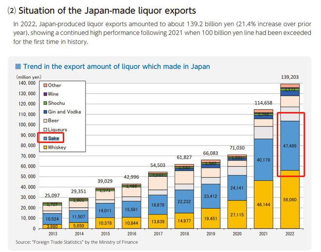 随着全球最大的自由贸易协定的签订,我国作为主要成员国,致力于发展经济全球化的自由贸易区,而日本清酒正是借势抢占中国市场!2022年出口总值天生赢家凯发k8国际达到474亿日元,而出口中国的金额更是占据了30%,达到了141亿日元!