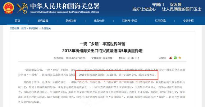黄酒作为我国传统的酒类,是依靠中国传统酿造工艺和气候特点所酿造的中国独有的佳酿,其中绍兴地区的黄酒更是借助我国进出口贸易的促进,在2018年就已经出口了2536.2万美元!