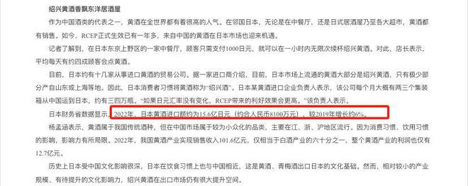 黄酒原本集中于我国江浙一带的独特酒业,随着国际酒业交流贸易,在世界也吸引了不少国家进口。中国贸易报中就揭露了,在日本财务省数据中显示,2022年日本黄酒的进口额也达到了15.6亿日元!