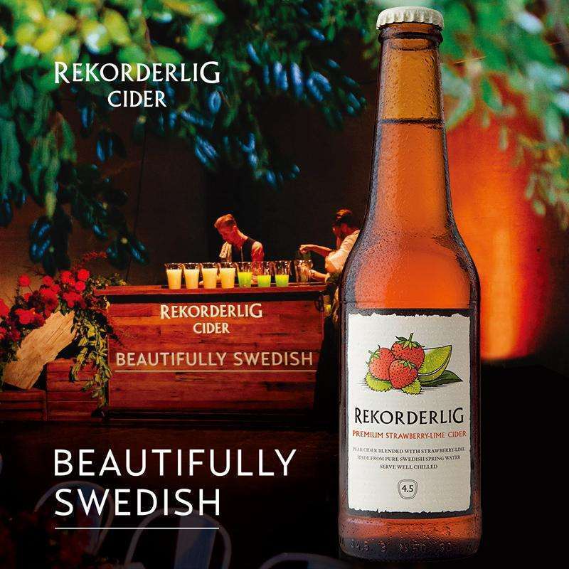 这款 Rekorderlig cider 瑞典进口 草莓青柠味 苹果甜酒 330ml 选用瑞典当地水果,150年精酿酒厂产地直采,当地天然山泉水酿造,男女喝都有美容养颜的功效,开瓶即饮。