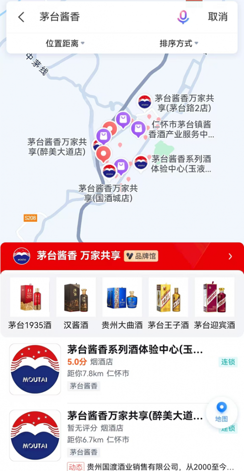 为进一步以数字化技术赋能茅台酱香系列酒的实体营销渠道,用科技赋能茅台酱香系列酒的渠道建设,酱香酒公司携手百度地图打造了贵州茅台酱香系列酒体验中心与“茅台酱香 万家共享”主题终端品牌馆,已于近日正式上线百度地图APP。