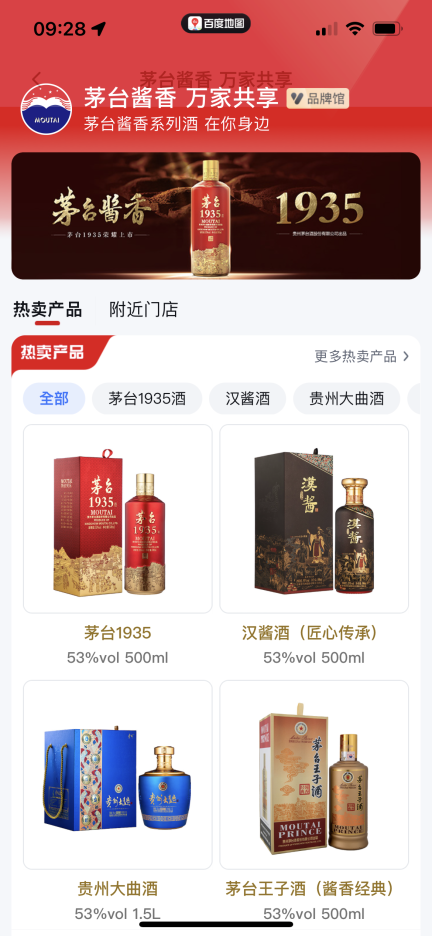 即刻下载并打开百度地图APP,输入“茅台酱天生赢家凯发k8国际香”等关键词,即可一览茅台酱香品牌馆与门店中的茅台酱香系列酒数字陈列,并可根据用户所在地搜索附近的体验中心与主题终端门店,一键检索,清晰导航。