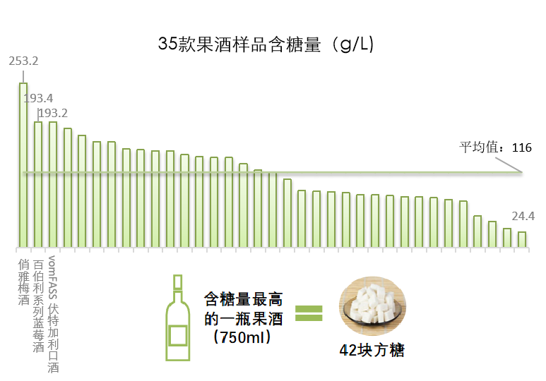 饮用一瓶含糖量最高的样品(750ml/瓶),糖摄入量约为189.9g,高达建议摄入量上限的2.8倍以上。