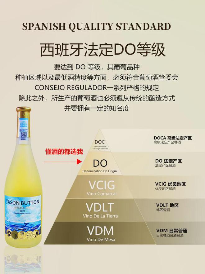 西班牙葡萄酒的分级制度主要包括四个等级:DO、DOCa、VDLT 和 VC。