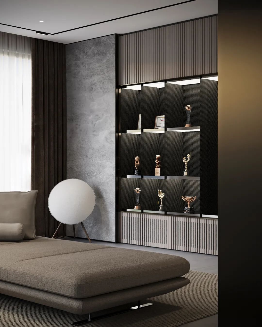 设计师给到了一个优解:简单增加一处照壁,用两条主卧动线串起多种私域生活。