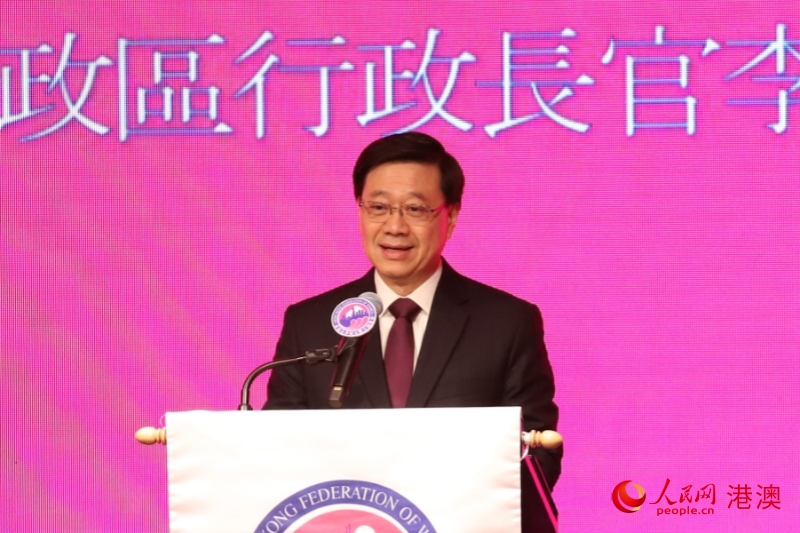 李家超致辞时向全港妇女寄予美好祝福。他表示,在香港,女性占整体人口的54%,是香港社会至关重要的力量。香港特区政府将坚定不移做好妇女工作,让香港女性不但可以撑起香港的经济社会发展,也能照顾她们的家庭需要。