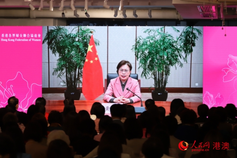 全国妇联副主席黄晓薇透过视频致辞指出,香港妇协在广泛团结凝聚香港各界妇女全面准确贯彻“一国两制”方针,支持香港特区政府依法施政,旗帜鲜明拥护《中华人民共和国香港特别行政区维护国家安全法》,维护香港长期稳定等方面建树良多。