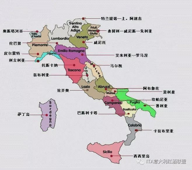 鲜明的意大利葡萄——意大利葡萄的许多品种,只在各自的地区种植。因为意大利的气候非常适合葡萄种植,许多品种已经进化了几千年来专门针对一个地区。因此,很难尝试将它们移植到不同的国家。
